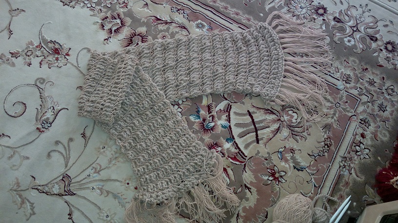 منم تنها بودم تازه نشسته بودم داشتم بافتنی میکردم شال و کلاه میبافتم (البته اینبار دیگه برا خودم، عکس کلاه رو نگرفته بودم، گل تزیینی هم براش خریدم که بچسبونم، عکس شال رو موقعی که تمومش کردم گرفته بودم) که یهو صدای شوشو اومد صدام زد!