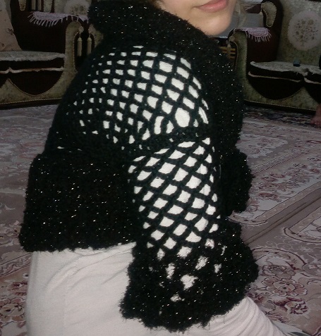 از قلاب بزرگ شماره 3.5 هم استفاده کردم و کلش رو با قلاب بافتم